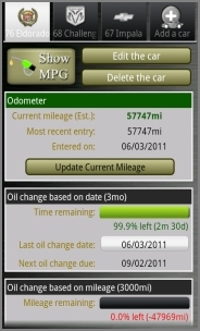 - Reminder at the status bar when a due date is within 7 days, or mileage left is less than 200 miles/km