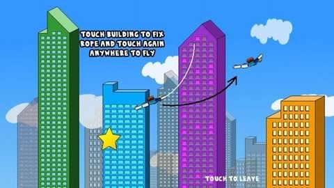 How to swing:Touch buildings to fix rope and touch again anywhere to fly
