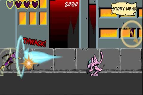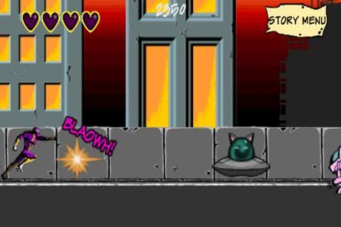 Dramatic effects! It looks like a monkey dressed in a dynamite suit is about to attack an old lady! This is truly a job for Thunder BANG – violet venerator of righteousness!